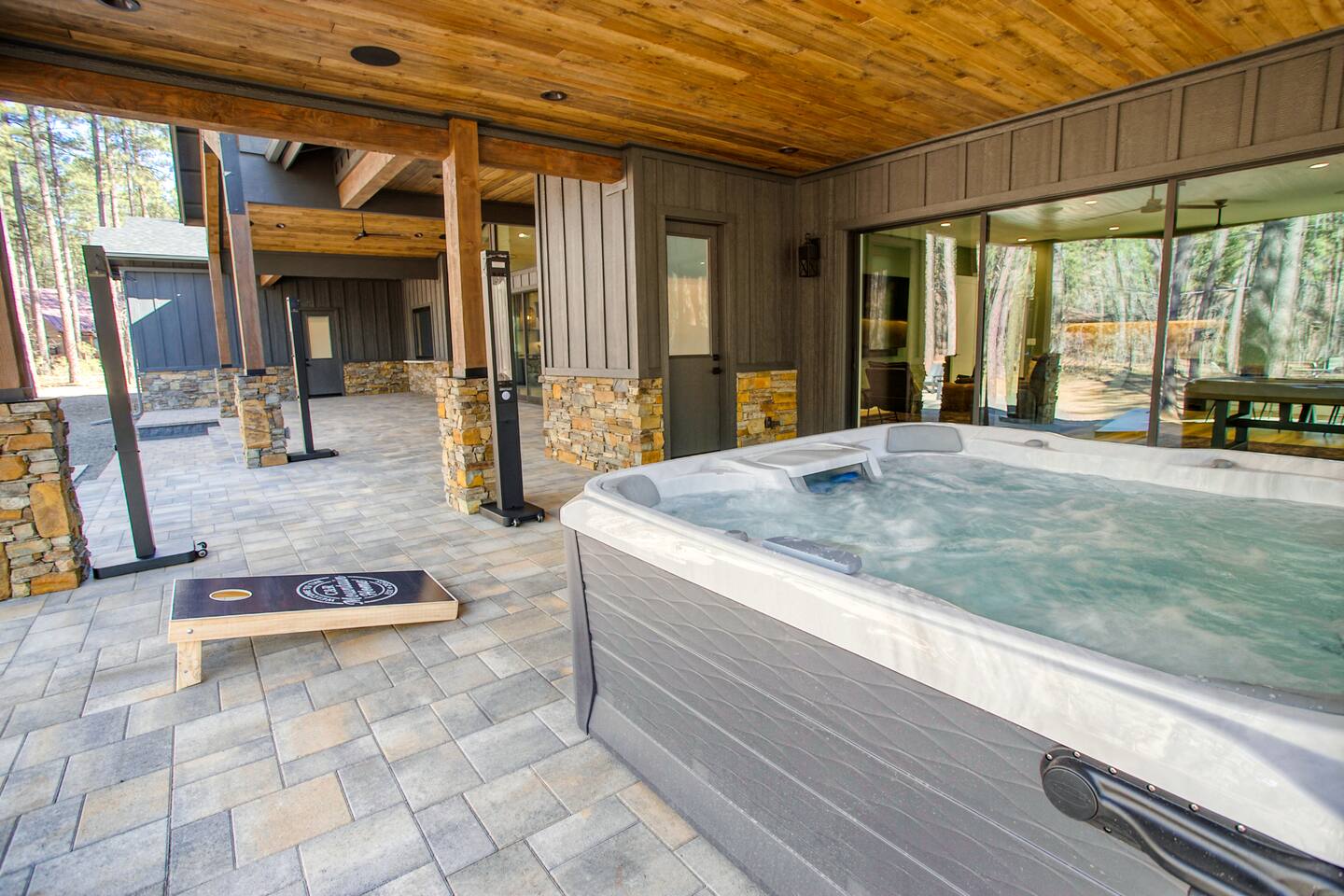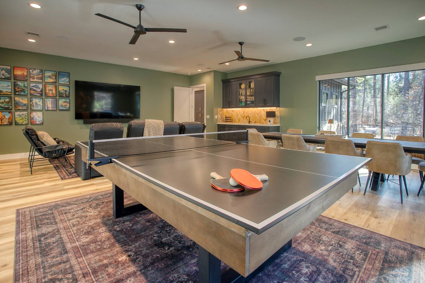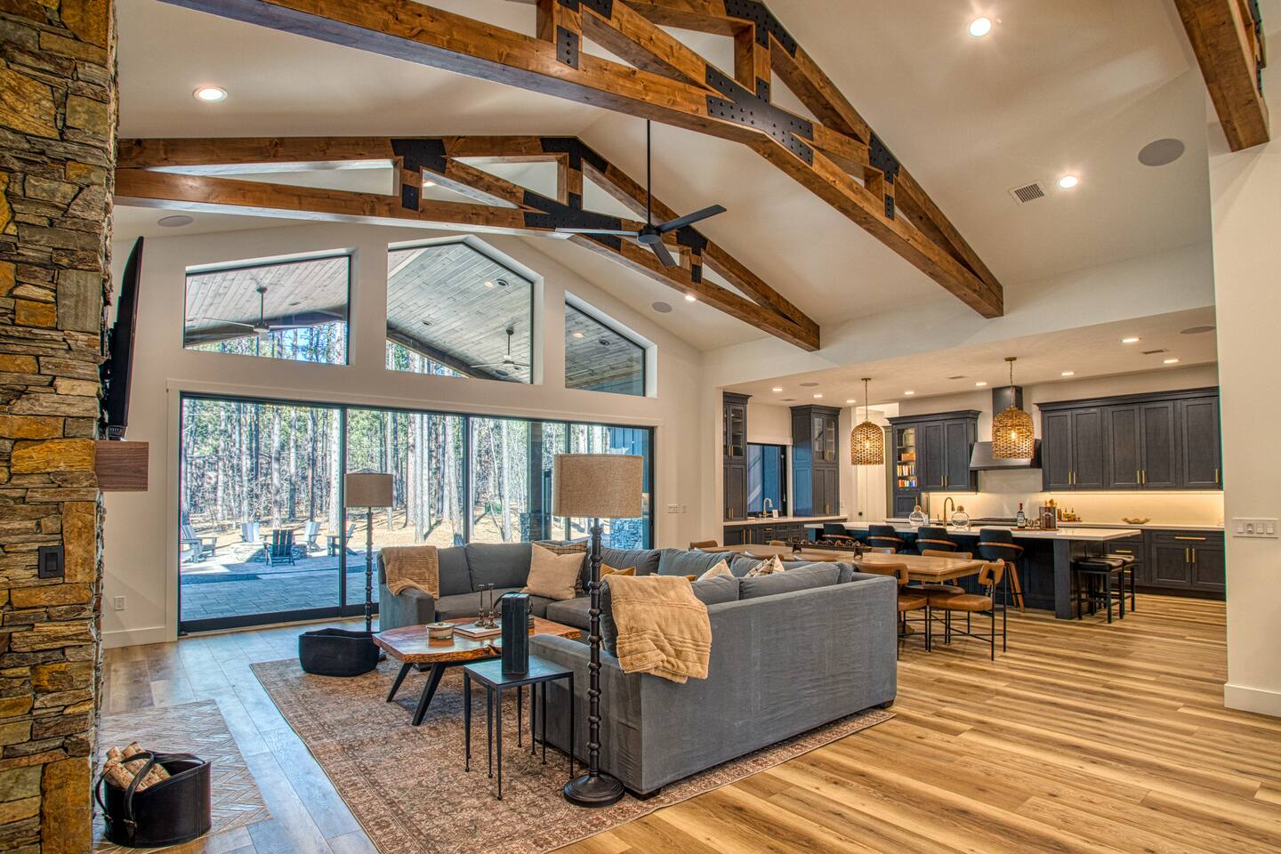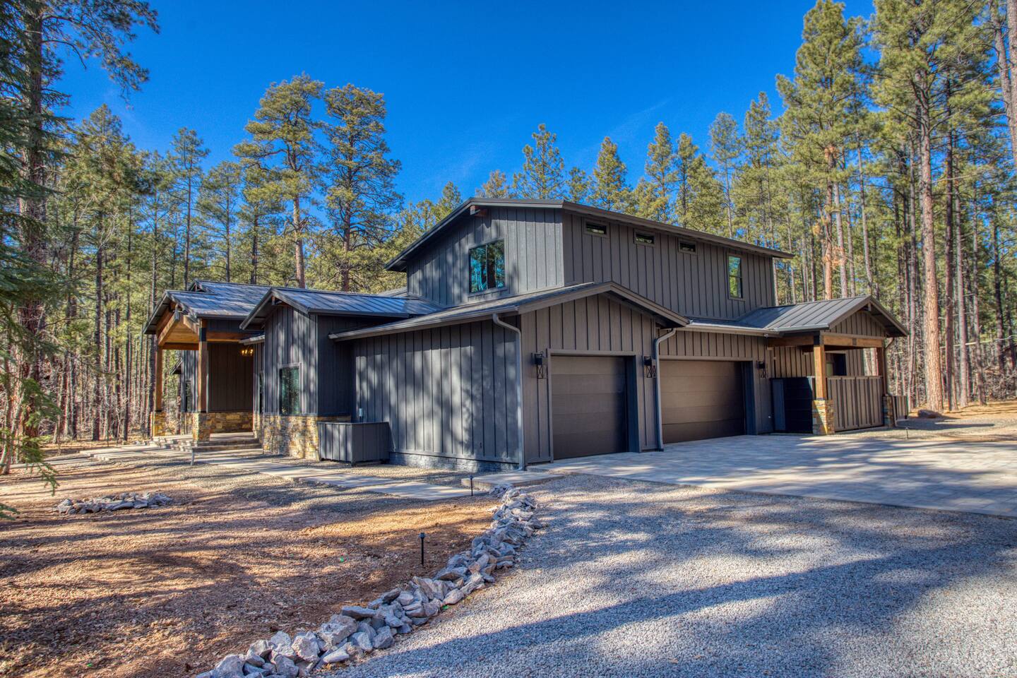 This 5,000 sq ft mountain-modern home, located in the exclusive White Mountain Summer Homes, offers the perfect mix of luxury and comfort. Gather in the great room, cook in the chef’s kitchen, play in the game room, unwind on the private spa deck, and relax by the gas firepit under the pines. Ideal for families and groups, the home features warm design, premium furnishings, and peaceful mountain surroundings for a truly memorable stay.