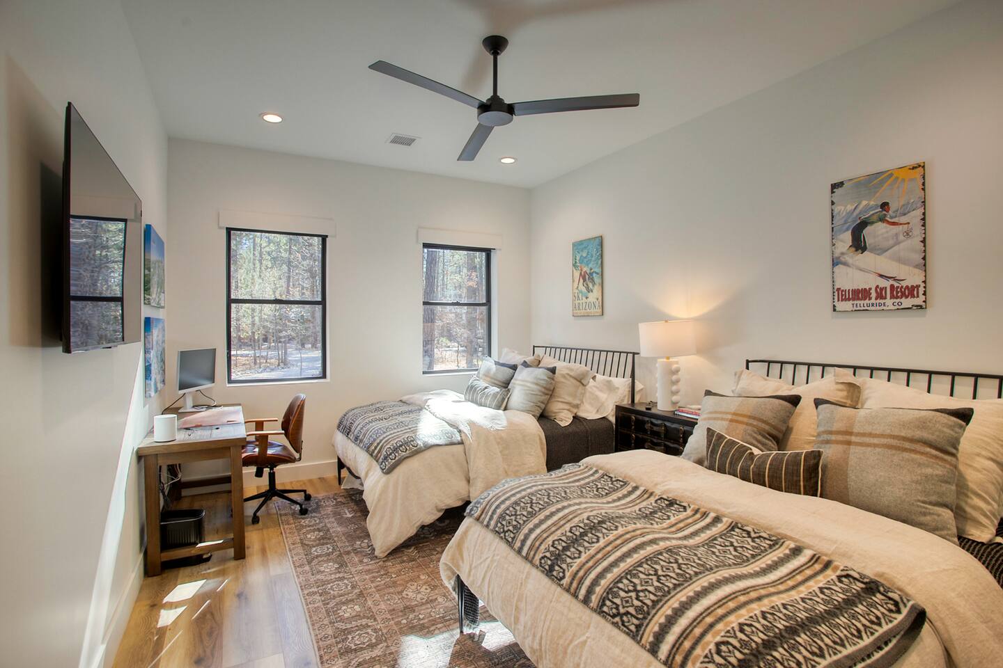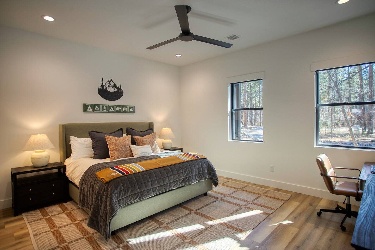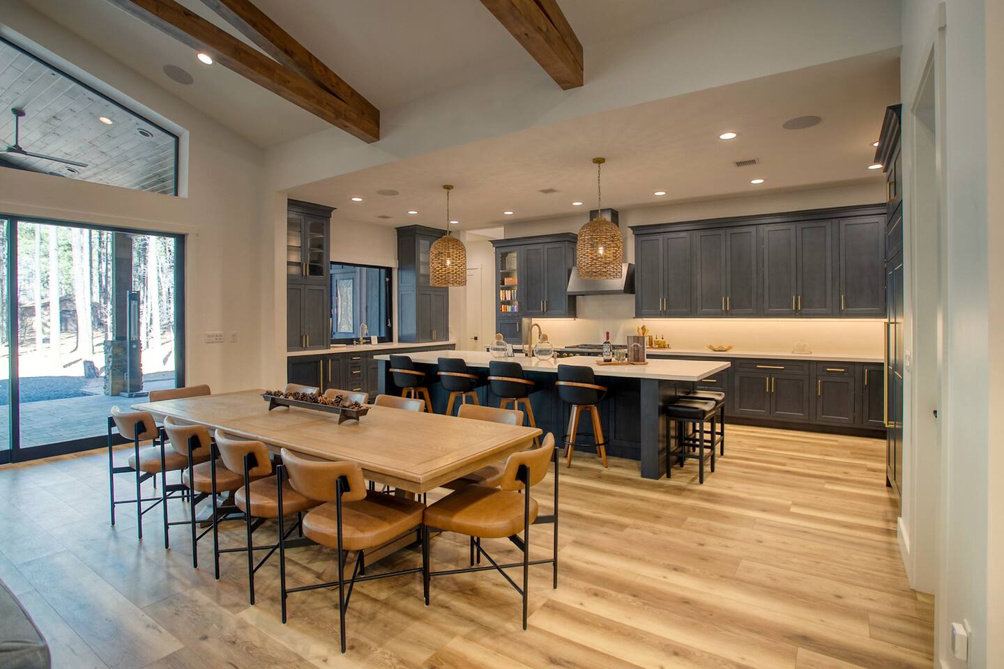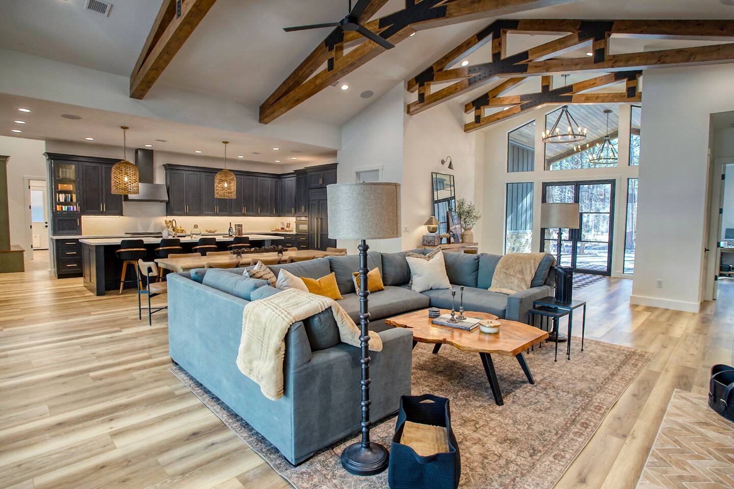 This 5,000 sq ft mountain-modern home, located in the exclusive White Mountain Summer Homes, offers the perfect mix of luxury and comfort. Gather in the great room, cook in the chef’s kitchen, play in the game room, unwind on the private spa deck, and relax by the gas firepit under the pines. Ideal for families and groups, the home features warm design, premium furnishings, and peaceful mountain surroundings for a truly memorable stay.