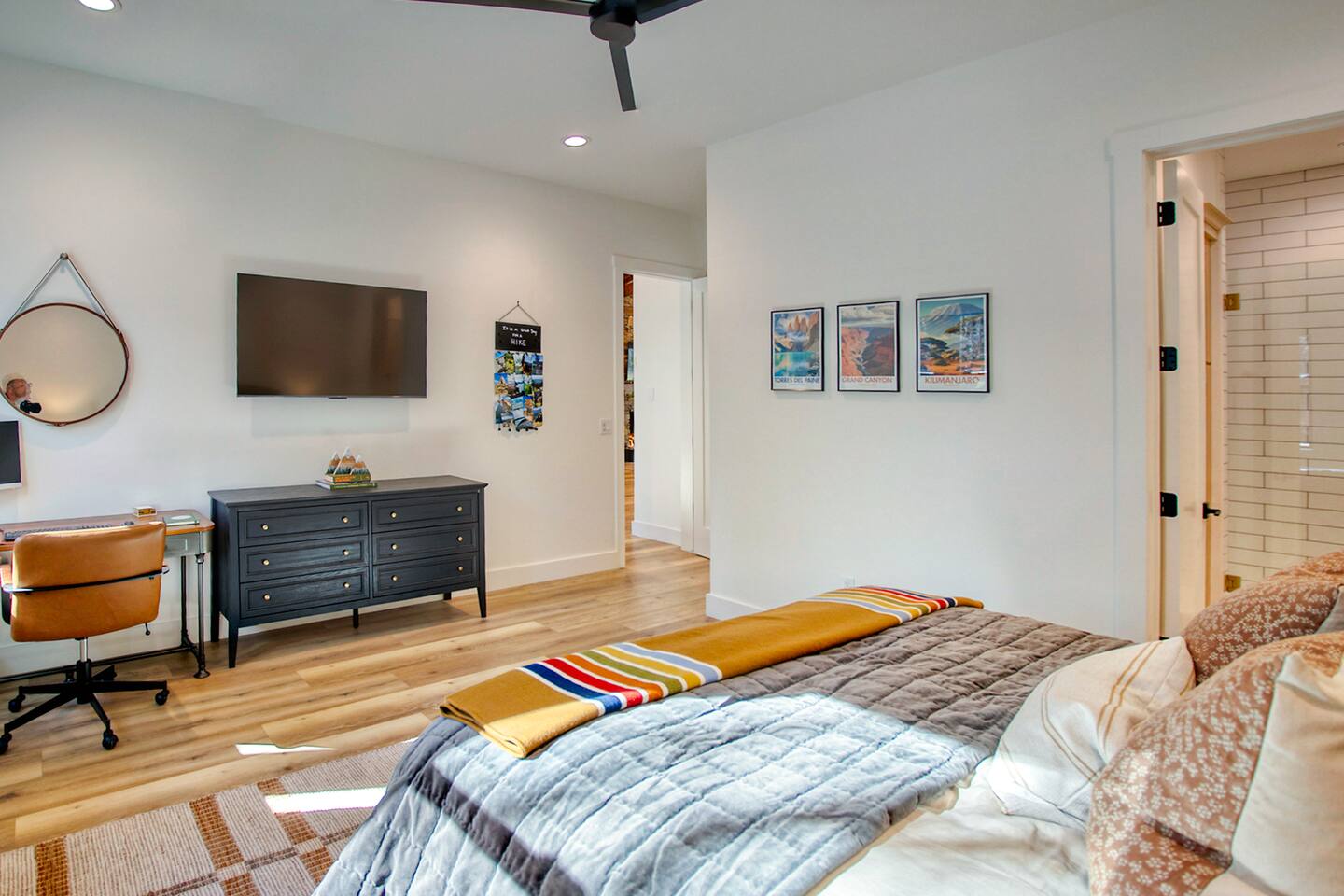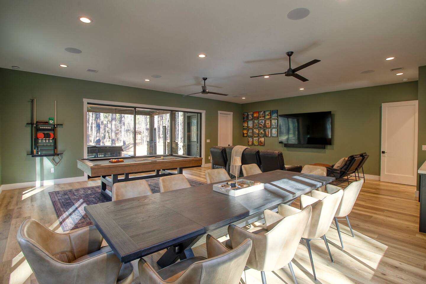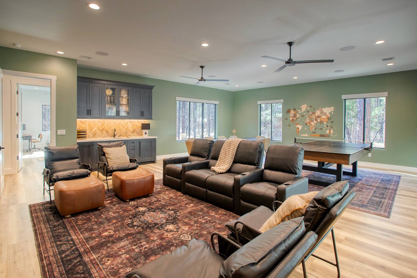 A few areas in the home are reserved for the homeowner: Kitchen Pantry: The main pantry is owner-use only, but you’ll find plenty of empty cabinets available for your groceries. Pinetop Primary Bedroom: The closet inside this room is reserved for the homeowner. A dedicated guest closet is conveniently located just outside the bedroom door for your use. Garage: The two-car garage is available for guests. A garage clicker is provided on the kitchen counter—please note that a replacement fee applies if it is not returned at checkout. The third garage bay is reserved for the homeowner.